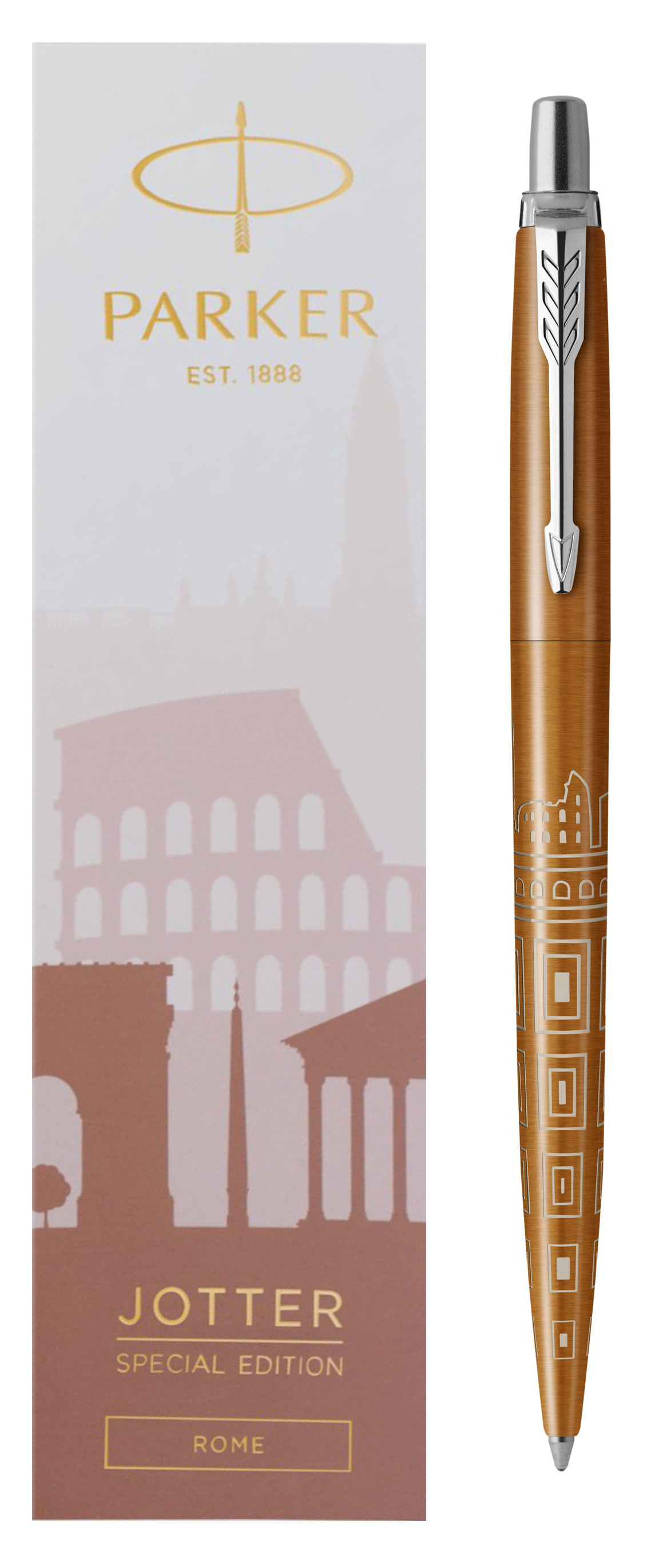 Ручка шариковая Parker Jotter Rome Bronze CT от официального дилера Parker в Чите. Вы можете дополнительно заказать гравировку, которая подчеркнет Вашу оригинальность и придаст памятность статусному подарку. Все ручки Паркер поставляются в фирменном футляре.