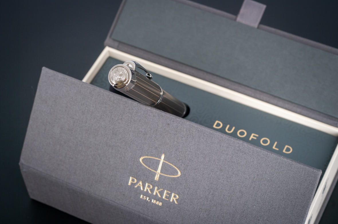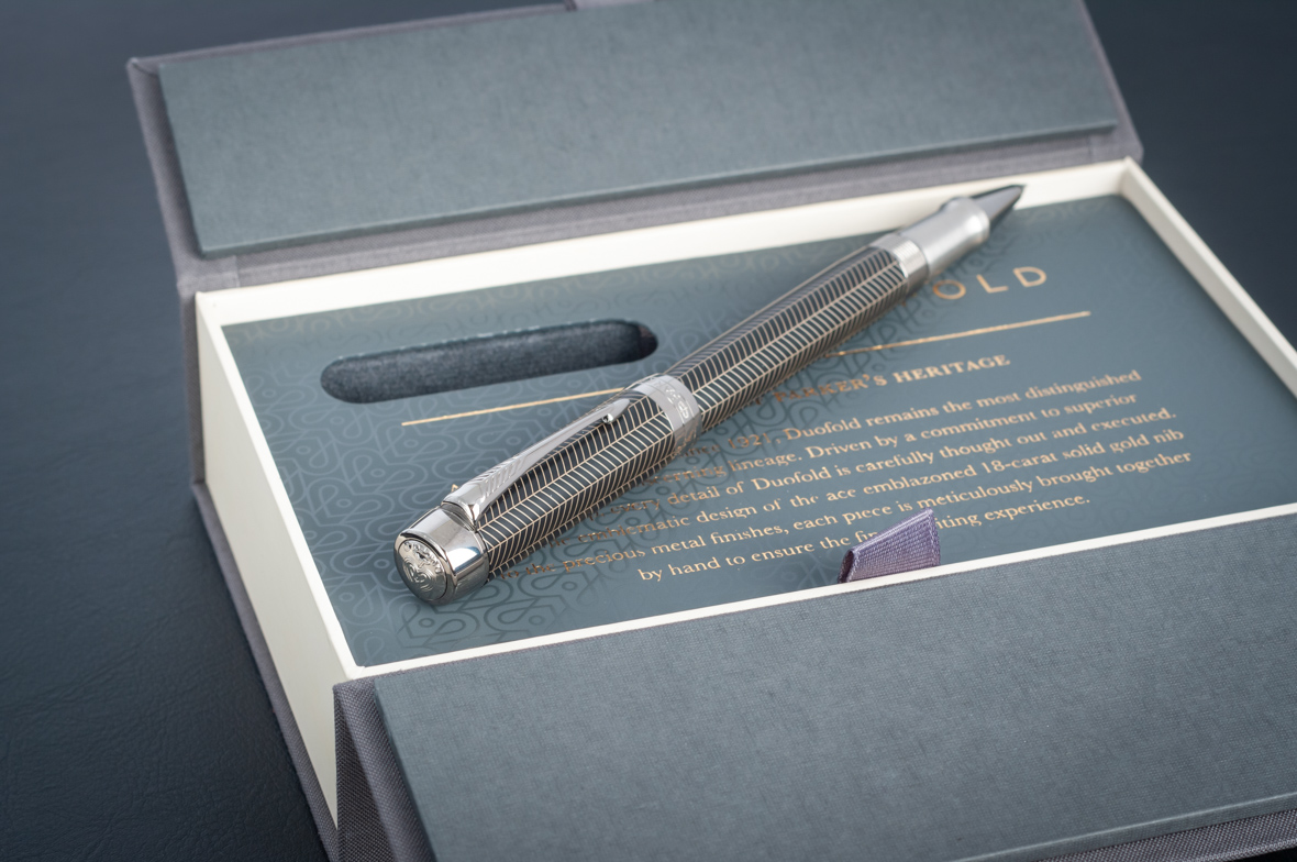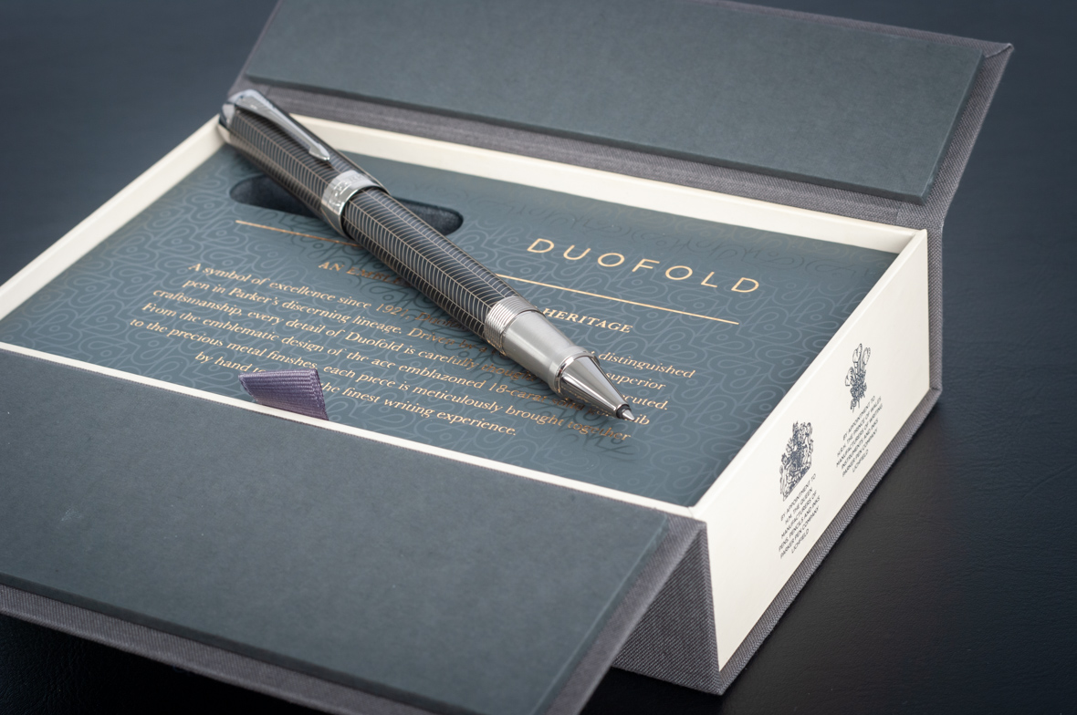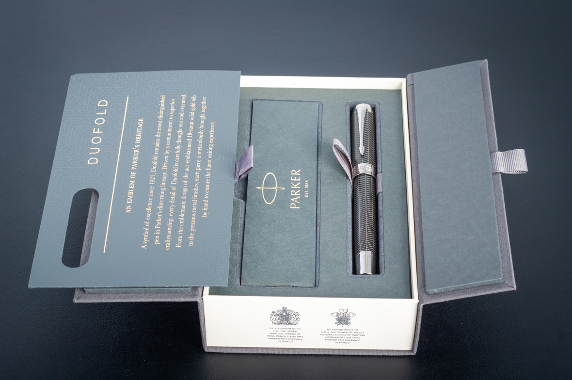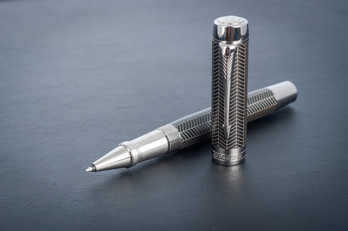 Ручка роллер Parker Duofold Prestige Centennial Black Chevron CT от официального дилера Parker в Чите. Вы можете дополнительно заказать гравировку, которая подчеркнет Вашу оригинальность и придаст памятность статусному подарку. Все ручки Паркер поставляются в фирменном футляре.